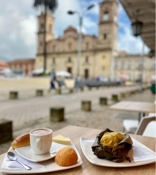 Platos emblemáticos que honran lo nuestro Chocolate santafereño, ajiaco, tamal, postres tradicionales y preparaciones que evocan la mesa colombiana de toda la vida, servidas con sencillez y cuidado.