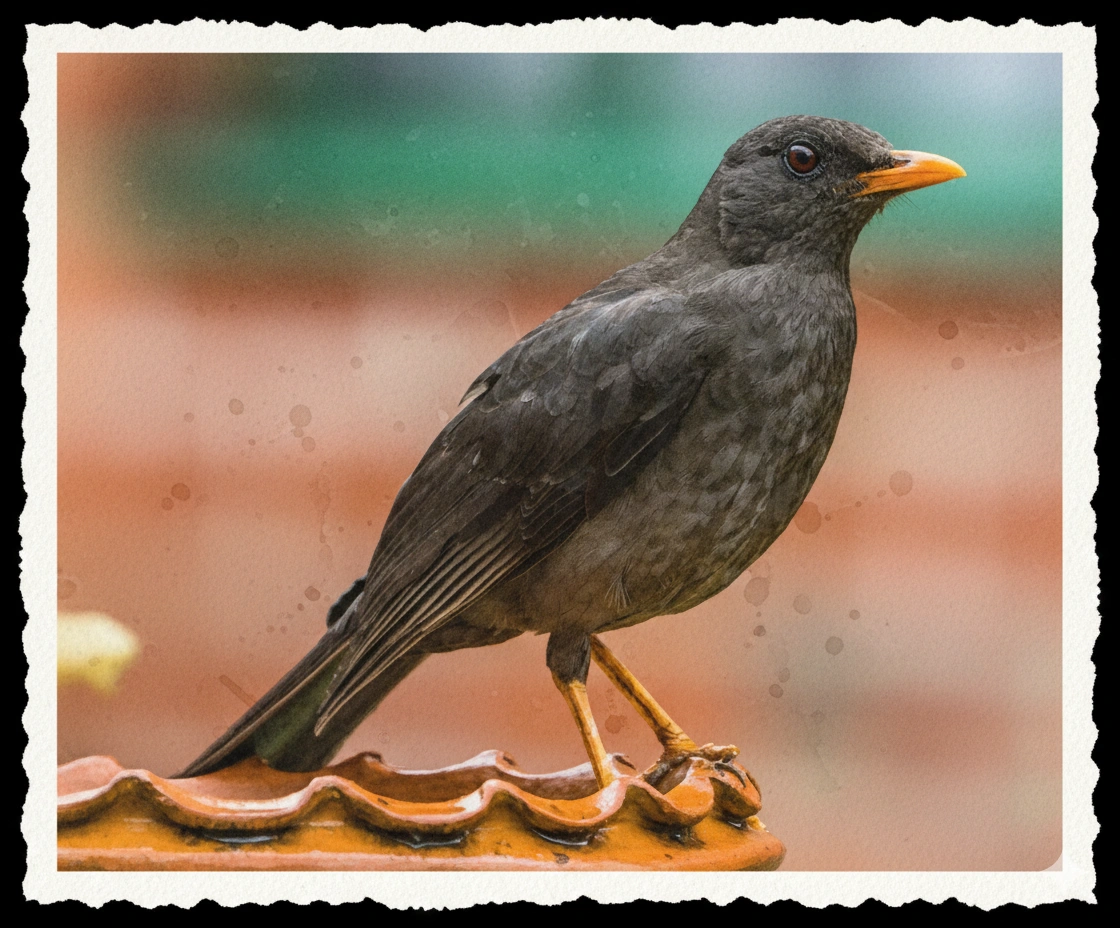Frecuente en zonas residenciales, árboles y parques. Su pico color naranja la hace inconfundible. Es activa al amanecer y al atardecer.